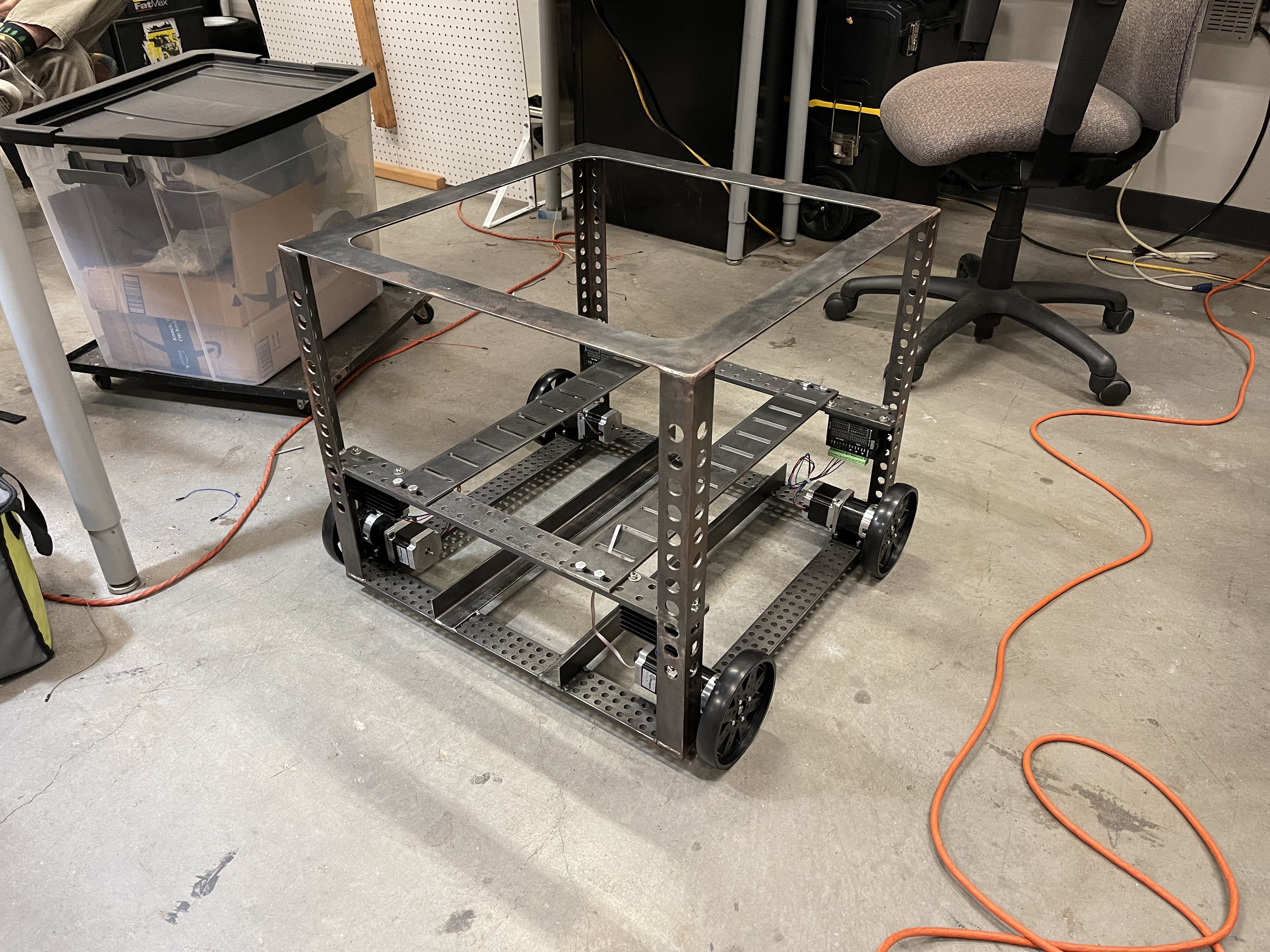 After welding, we assembled the motors to the frame and passed the rest off to the software team for testing their sub-systems.